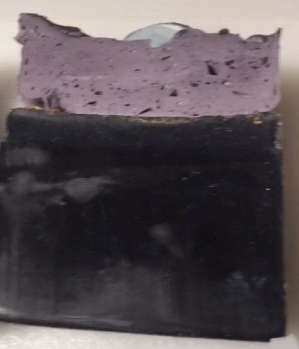 Top: Whipped soap, mystical purple black (mica) drizzle, silver crescent moon soap embeds.