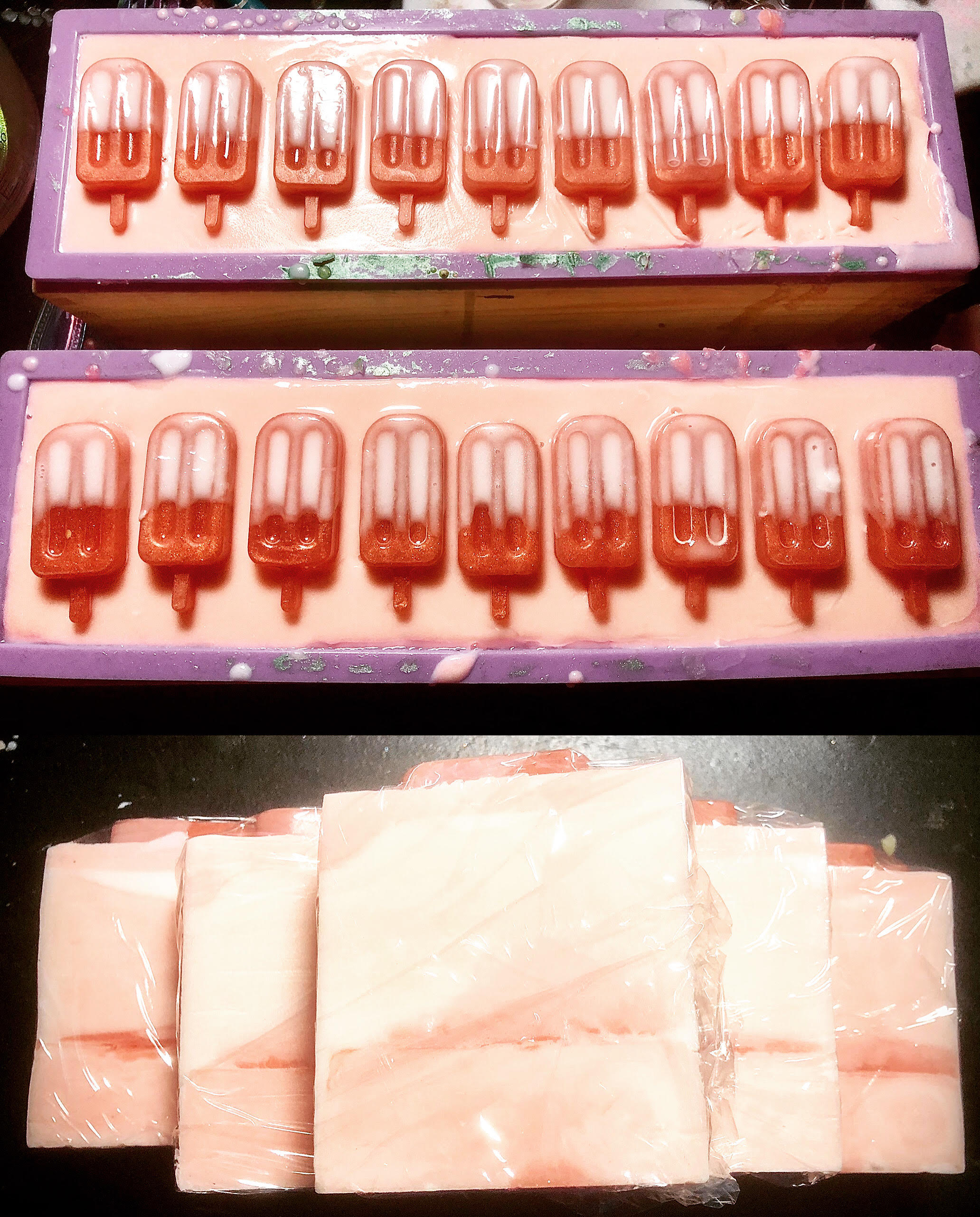 The orange color & Popsicle soap embeds: